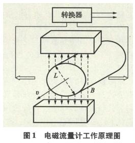 污水處理廠流量計(jì)是利用法拉*電磁感應(yīng)定律測量,如圖1所示,用于測量電極與運(yùn)動的流體構(gòu)成的回路中產(chǎn)生的電參數(shù),并根據(jù)公式換算成流體速度,再測量流通截面液位高度得到流通面積,兩者相乘得到所測流量。