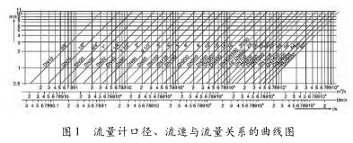 儀表口徑是根據管道內平均流速而定的,通常選用與管道相同的口徑或略小些。一般工業輸水管道經濟流速為1.5~3m/s,易粘附沉積結垢物質則提高到3~4m/s或更高,礦漿等磨蝕性強的為2~3m/s。耐腐蝕污水流量計的液體流速范圍可在1~10m/s之間選用。原理上,上限流速并沒有限制,滿度流量的流速下限一般為1m/s,有些產品為0.5m/s,低于此流速,從測量準確度出發應改用小管徑,以異徑管連接到管道。但加裝異徑管要注意壓力損失的問題。圖1為流量計口徑、流速與流量關系的曲線圖,計算儀表口徑時可參照。