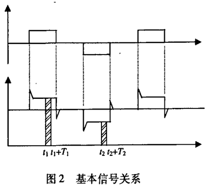 腐蝕性污水流量計(jì)一般都采用工頻交流電源供電,其電源電壓的幅值和頻率的變化都會給腐蝕性污水流量計(jì)帶來電源性干擾噪聲。對電源電壓的幅值變化,因采用多級集成穩(wěn)壓,一般而言電源電壓的幅值變化對電磁流量的測量精度影響不大。當(dāng)電源電壓的頻率波動時,雖然其波動范圍有限,但對腐蝕性污水流量計(jì)測量精度影響較大。為了解決工頻干擾問題,實(shí)現(xiàn)對流體流速感應(yīng)電勢e柚信號的準(zhǔn)確測量,需利用以下基本關(guān)系:①勵磁周期為工頻周期的整數(shù)倍,即勵磁頻率為50/nHz(n為偶數(shù));②正負(fù)勵磁下的同相位采樣。圖2是對應(yīng)低頻矩形波勵磁形式下的典型電勢信號形式,按上述關(guān)系在一個勵磁周期下,若假設(shè)t。和t:點(diǎn)為工頻干擾的等效干擾點(diǎn),且采樣寬度T=T1=T2,則e –ab的基本算式為:,