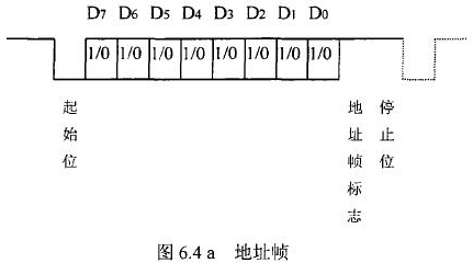 飲用水流量計等節(jié)點(diǎn)設(shè)備和站內(nèi)PC機(jī)間的通信采用異步串行通訊控制規(guī)程,并采用地址位喚醒握手協(xié)議。因此在協(xié)議中規(guī)定了傳地址和傳數(shù)據(jù)兩種不同的幀格式,如圖.64所示。地址幀和數(shù)據(jù)幀由11位構(gòu)成,幀格式為l位起始位,l位停止位,8位數(shù)據(jù)位,1位*9位。我們將*9位設(shè)定為“地址/數(shù)據(jù)指示位”,用來區(qū)分所發(fā)送/接受的幀信息是地址幀還是數(shù)據(jù)幀。*9位為1,表示PC機(jī)發(fā)送/接受的是“地址幀”*9位為O,表示主機(jī)發(fā)送/接受的是“數(shù)據(jù)幀”。命令幀與校驗(yàn)和的發(fā)送格式與數(shù)據(jù)幀相同,因此可由數(shù)據(jù)幀演化得到。