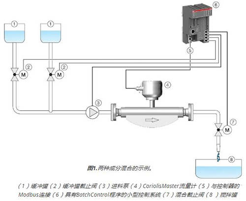 操作員使用觸摸屏顯示器輸入總混合量和各個步驟的數(shù)量。然后,通過觸點或在顯示屏上開始混合操作。然后由控制系統(tǒng)的BatchControl軟件自動啟動泵和閥門。整個混合操作完成后,安裝會自動停止。