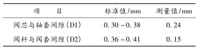 1)由上表可以看出,閥芯與閥套間隙(D1)、閥桿與閥套間隙(D2)明顯小于標(biāo)準(zhǔn)值,導(dǎo)致運(yùn)行時出現(xiàn)局部卡澀現(xiàn)象。