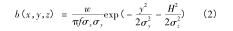 式中: b(x,y,z) = w × e(x,y,z),其中 e(x,y,z) 為二氧化硫濃度與循環流化床dn150渦街流量計煙氣排放源煙氣強度的比例系數;f 為平均風速,m/s; w 為地面空氣內煙氣排放強度;σ x 為橫向擴散系數受環境穩定度與下風向距離因素的影響程度。式(3)中描述的是基于時間變化的循環流化床dn150渦街流量計煙氣排放源煙氣排放強度計算模型。