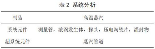 1)定義技術系統(tǒng)實現(xiàn)的功能。問題所在技術系統(tǒng)為液態(tài)液化氣流量計傳感器系統(tǒng);該技術系統(tǒng)的功能為轉換信號;實現(xiàn)該功能的約束:測量精度為 ±1%,成本提高控制在 20% 之內。