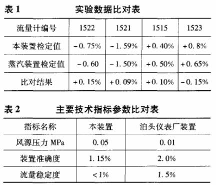 1)對同一臺蒸汽流量計在該裝置上的檢定結果與蒸汽流量檢定裝置上鑒定結果的比對如表1所示。該裝置準確度為1.25%。表1所列數據為誤差*大值。