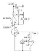 傳感器輸出電流通過檢測電阻時(shí),測量電阻兩側(cè)的電壓值,電壓值與電阻值的比值就是電流值,好終通過計(jì)算就能獲取煙氣中二氧化硫的體積濃度。由于 SO 2 -2000 傳感器輸出電流為微安級(jí),導(dǎo)致檢測電阻兩側(cè)的電壓值過小,因此利用兩極運(yùn)算