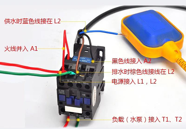 使用藍(lán)色和棕色的電線(xiàn):浮球在上液位時(shí),接點(diǎn)是不通的狀態(tài)。浮球在下液位時(shí),接點(diǎn)是接通的狀態(tài)。