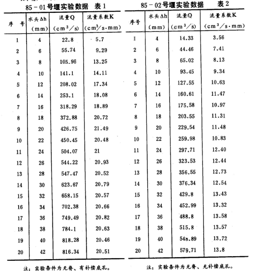 2.無(wú)補(bǔ)償?shù)卓椎碾p曲線無(wú)脊薄壁堰,見圖8,其流量與作用水頭之間變化關(guān)系基本上是線性的,流量系數(shù)K值隨作用水頭升高略有增大。